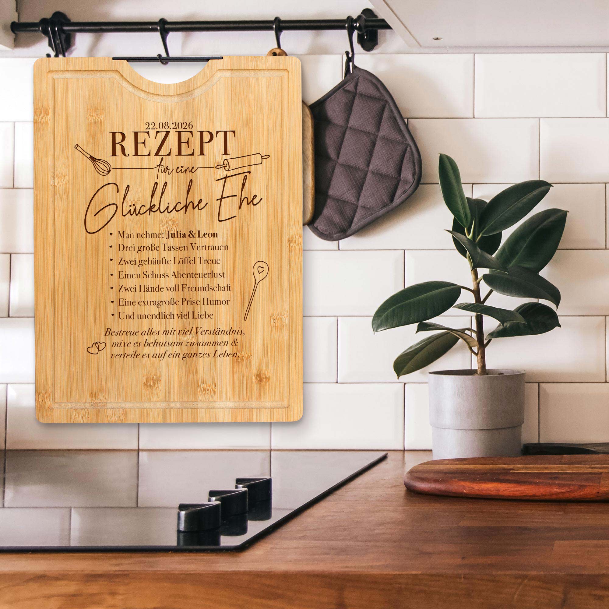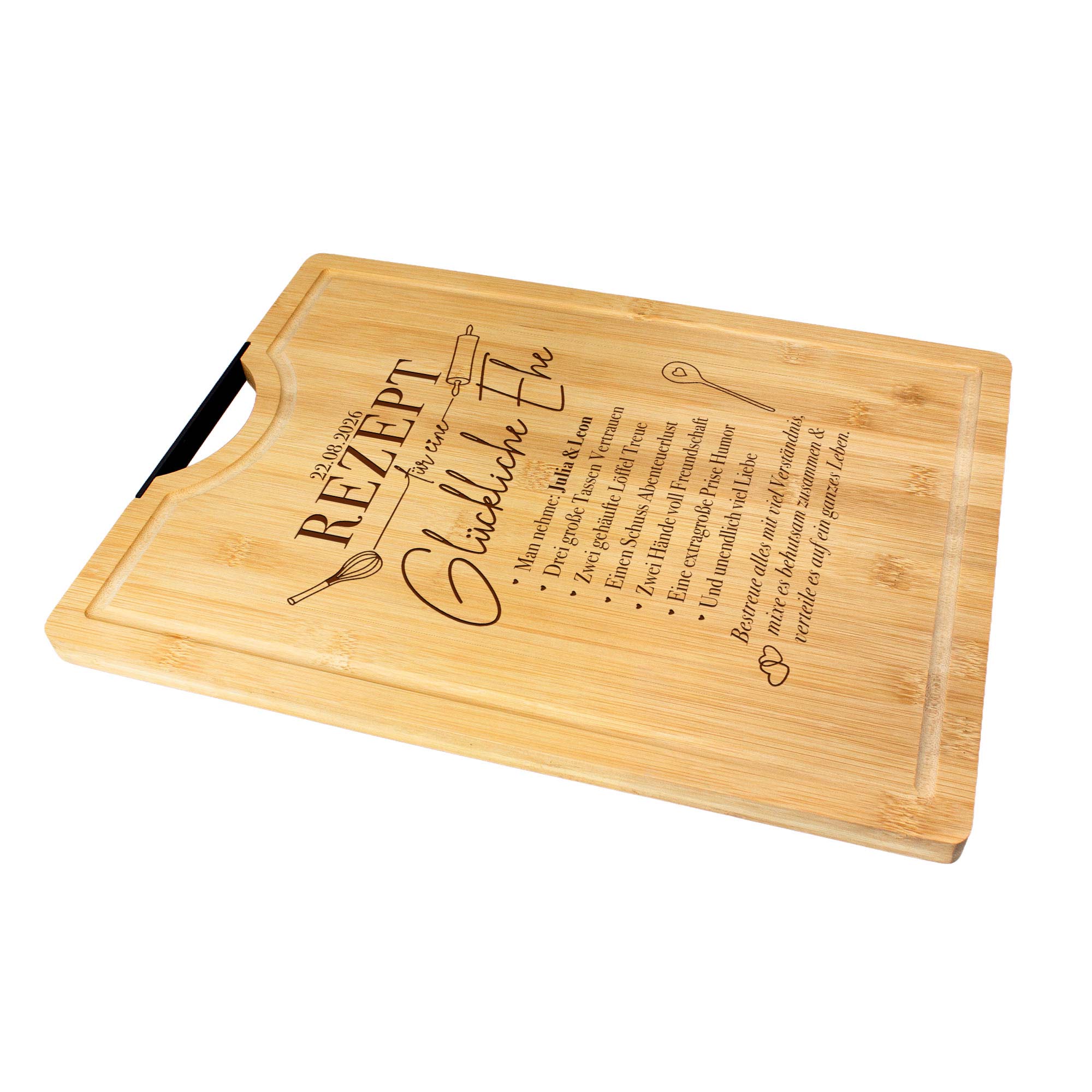 Bambusholz Schneidebrett mit Gravur - Rezept glückliche Ehe