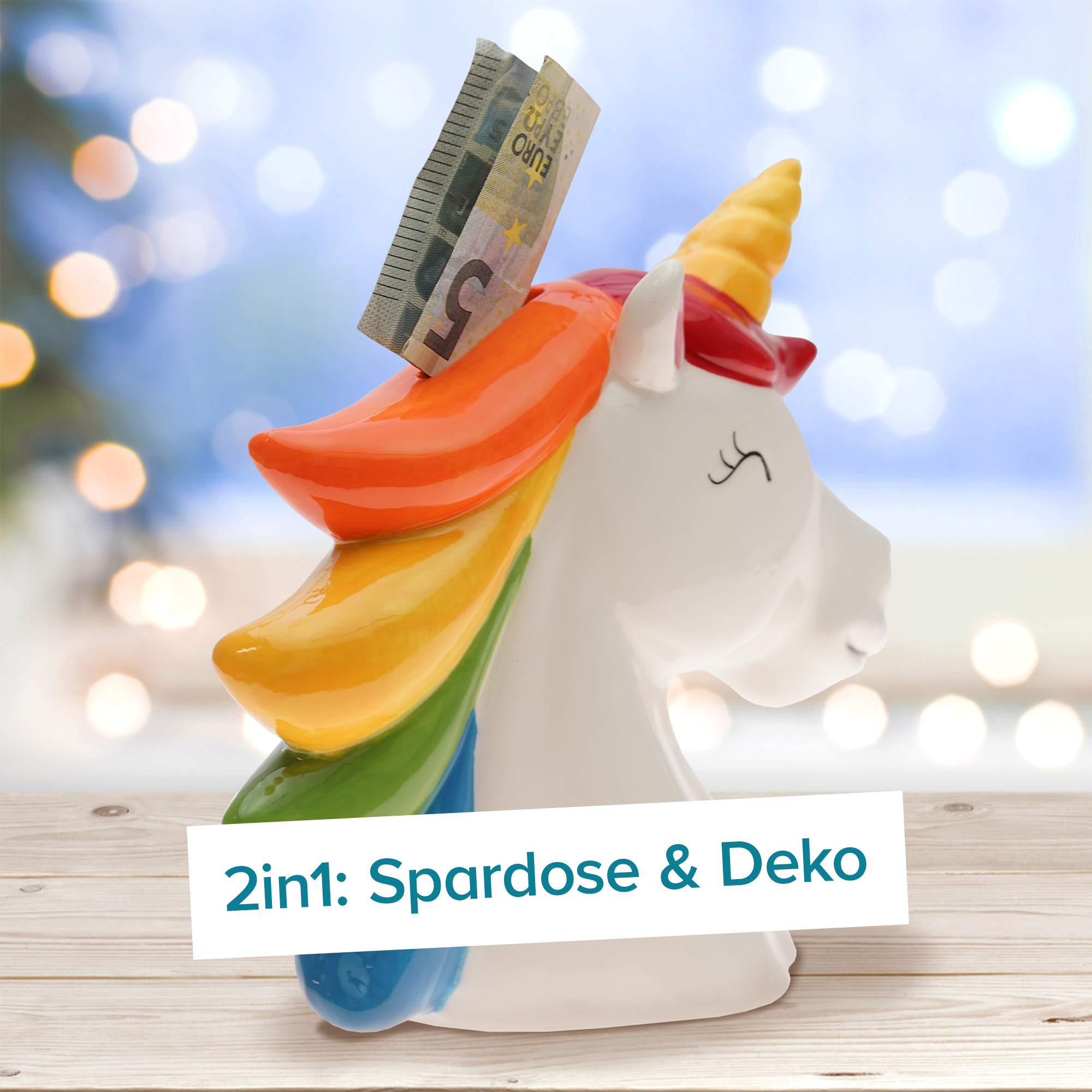Die Kaffeekasse in der Firma ist wieder kaputt. Der Briefumschlag, der als Sparschwein diente, ist nass geworden und das ganze gesammelte Geld verteilt sich auf dem Fußboden. Damit ist jetzt Schluss! Die liebe Kollegin, die sich um das Einsammeln des Kaffeegeldes kümmert, sieht in der Freizeit gerne Fantasy Abenteuer. Deshalb steht für Dich fest, dass eine Einhorn Sparbüchse in die Firma kommen muss. Du schlägst zwei Fliegen mit einer Klappe. Das Einhorn für Ersparnisse ist ein sicherer Aufbewahrungsort und Deine Kollegin freut sich ganz bestimmt.