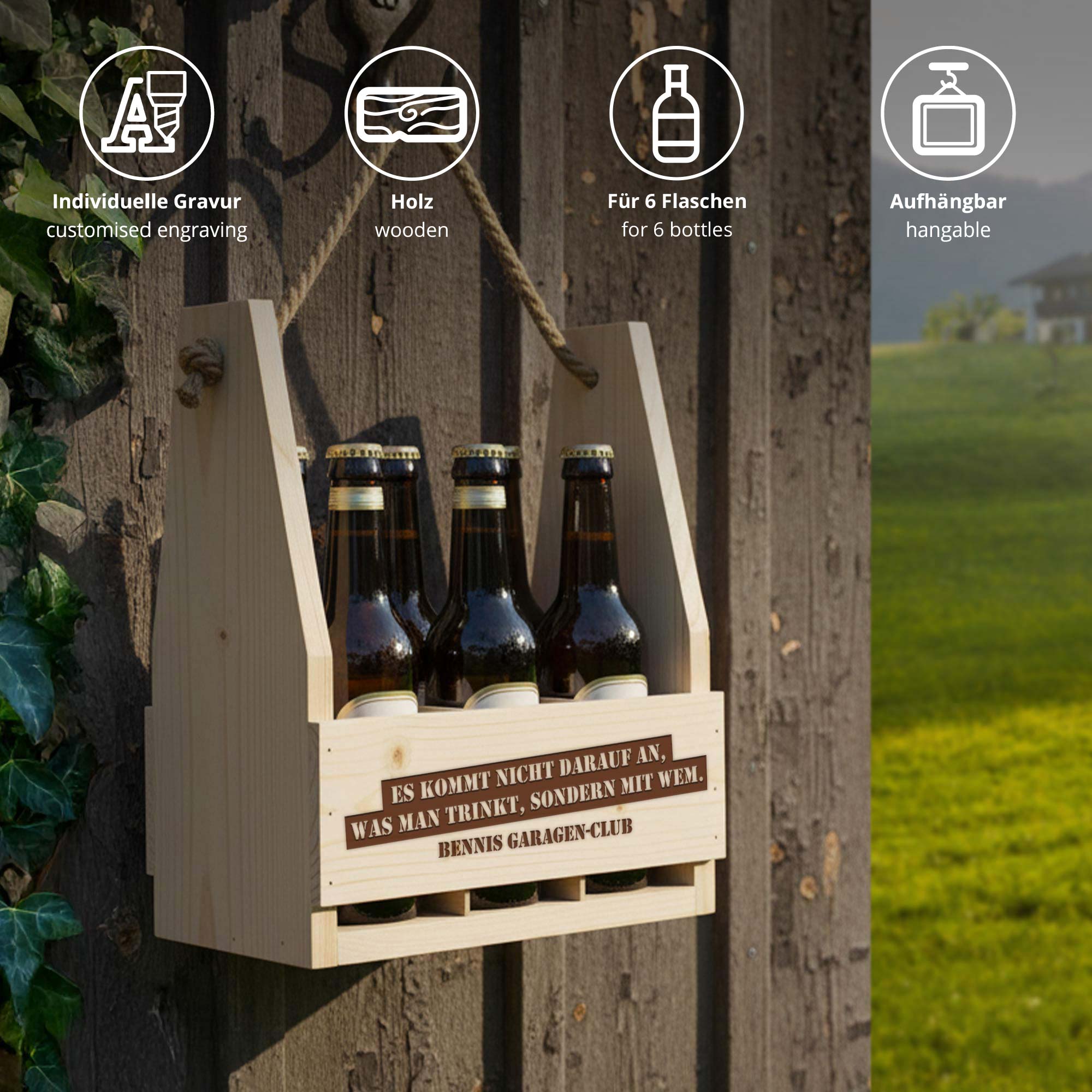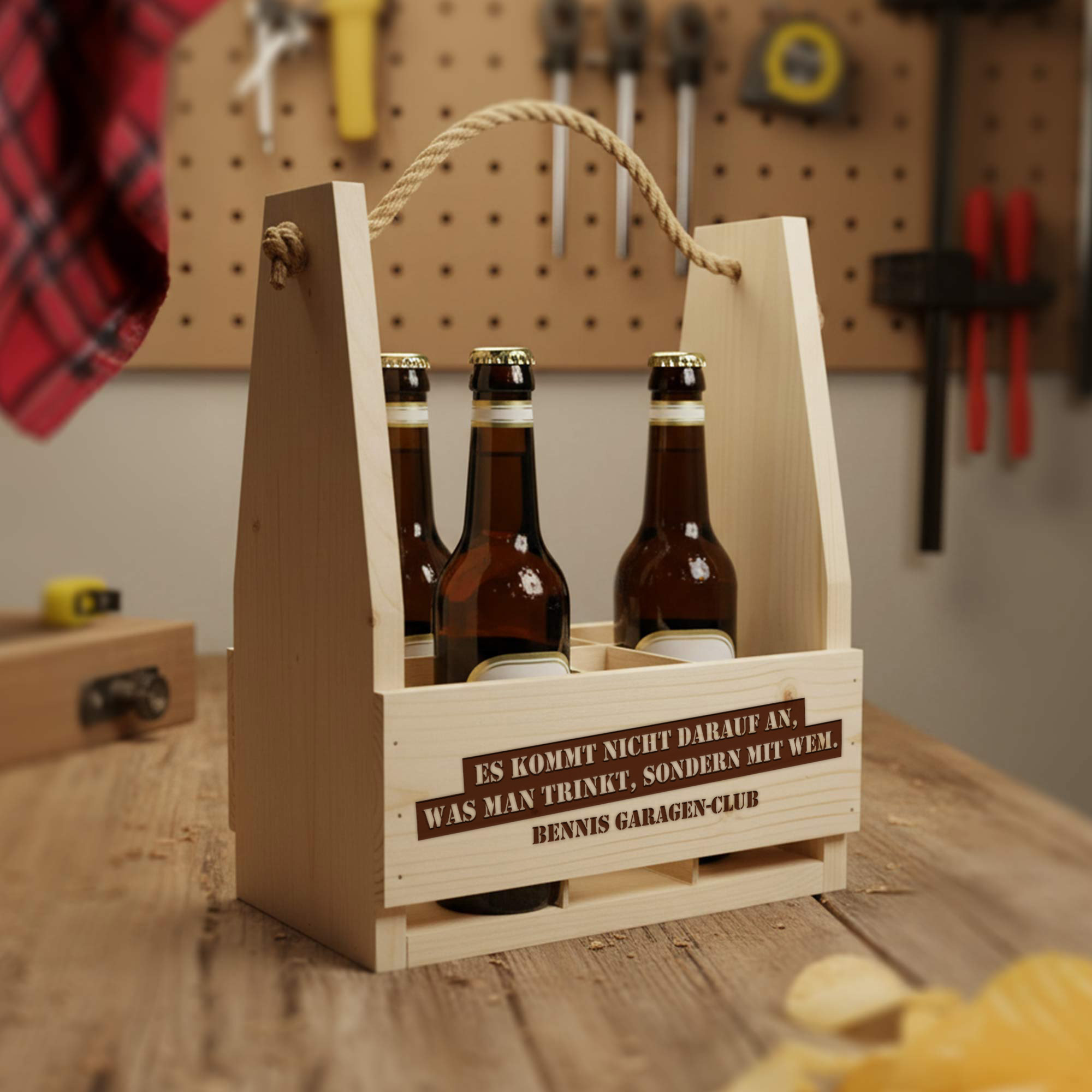 Der robuste Holzträger bringt nicht nur Flaschen sicher ans Ziel, sondern auch Menschen zusammen. Perfekt für gemeinsame Abende, Feiern oder einfach den nächsten Feierabend mit den richtigen Leuten.