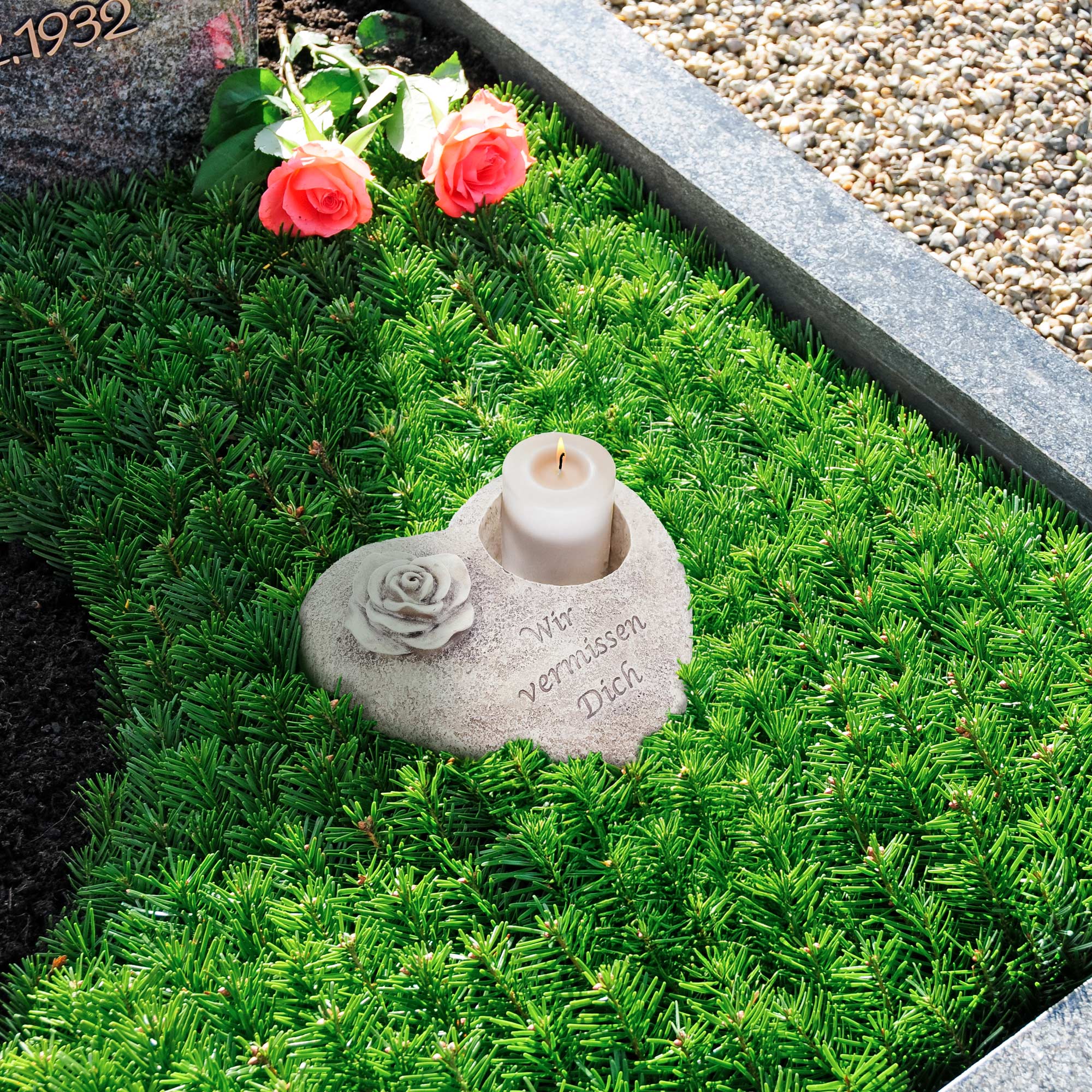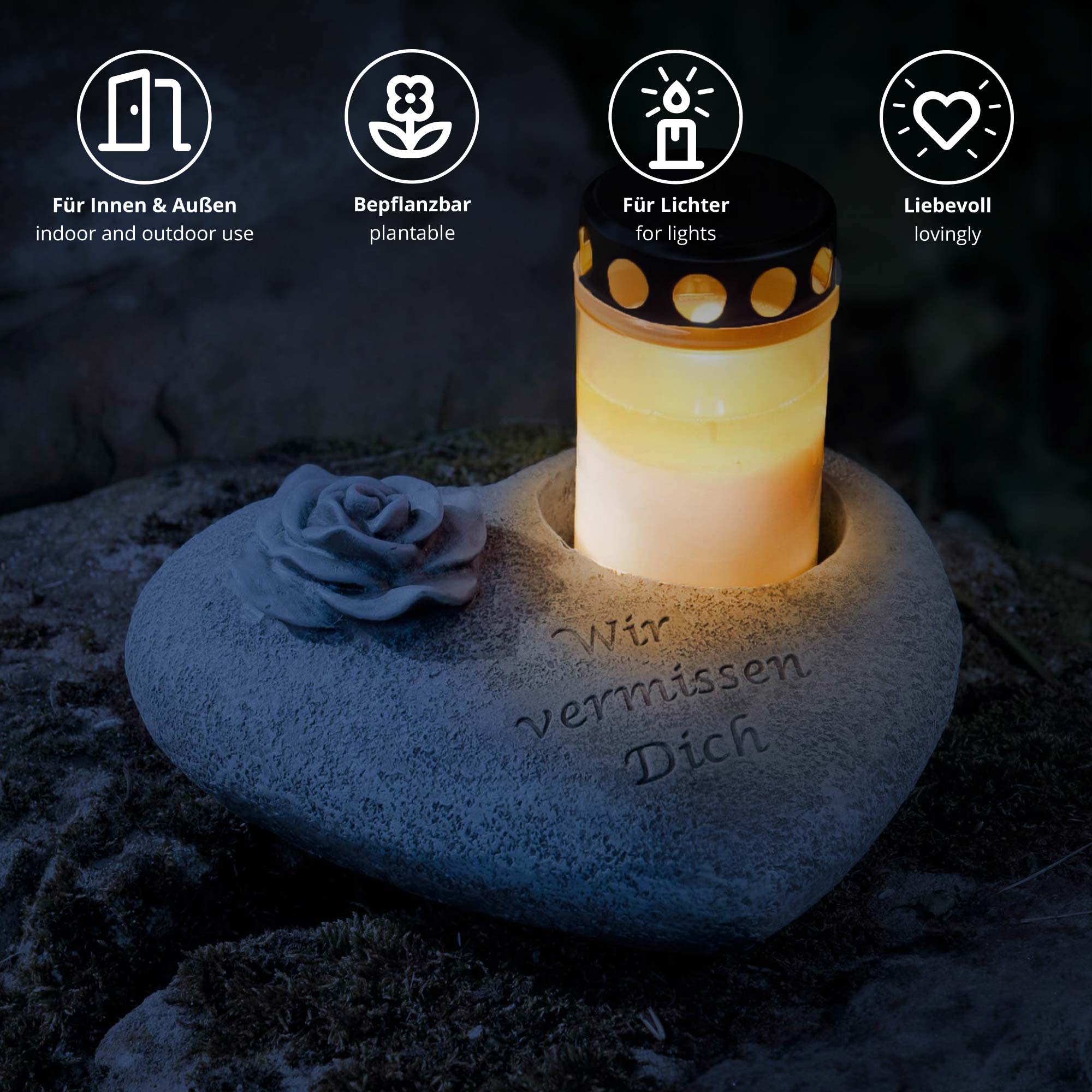 Grabschmuck Trauerherz für Grabkerzen - Wir vermissen Dich