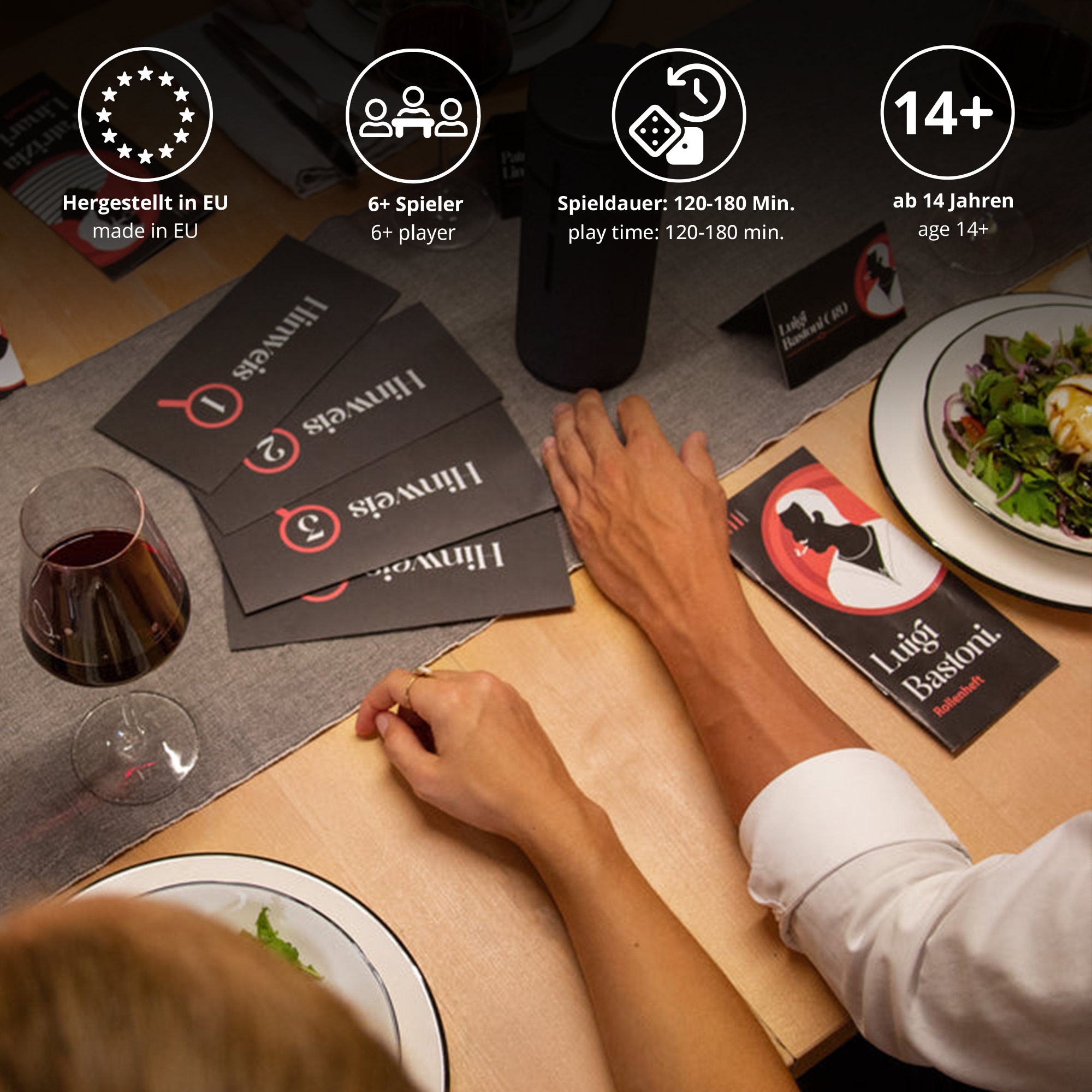 Zwischen Antipasti und Dessert wird ermittelt, verdächtigt und gezweifelt. Wer hat ein Alibi? Wer lügt? Und wer zieht im Hintergrund die Fäden? Ein Abend voller Spannung, Rollenspiel und überraschender Wendungen erwartet Dich und Deine Freunde – stilecht im Mafia-Ambiente.