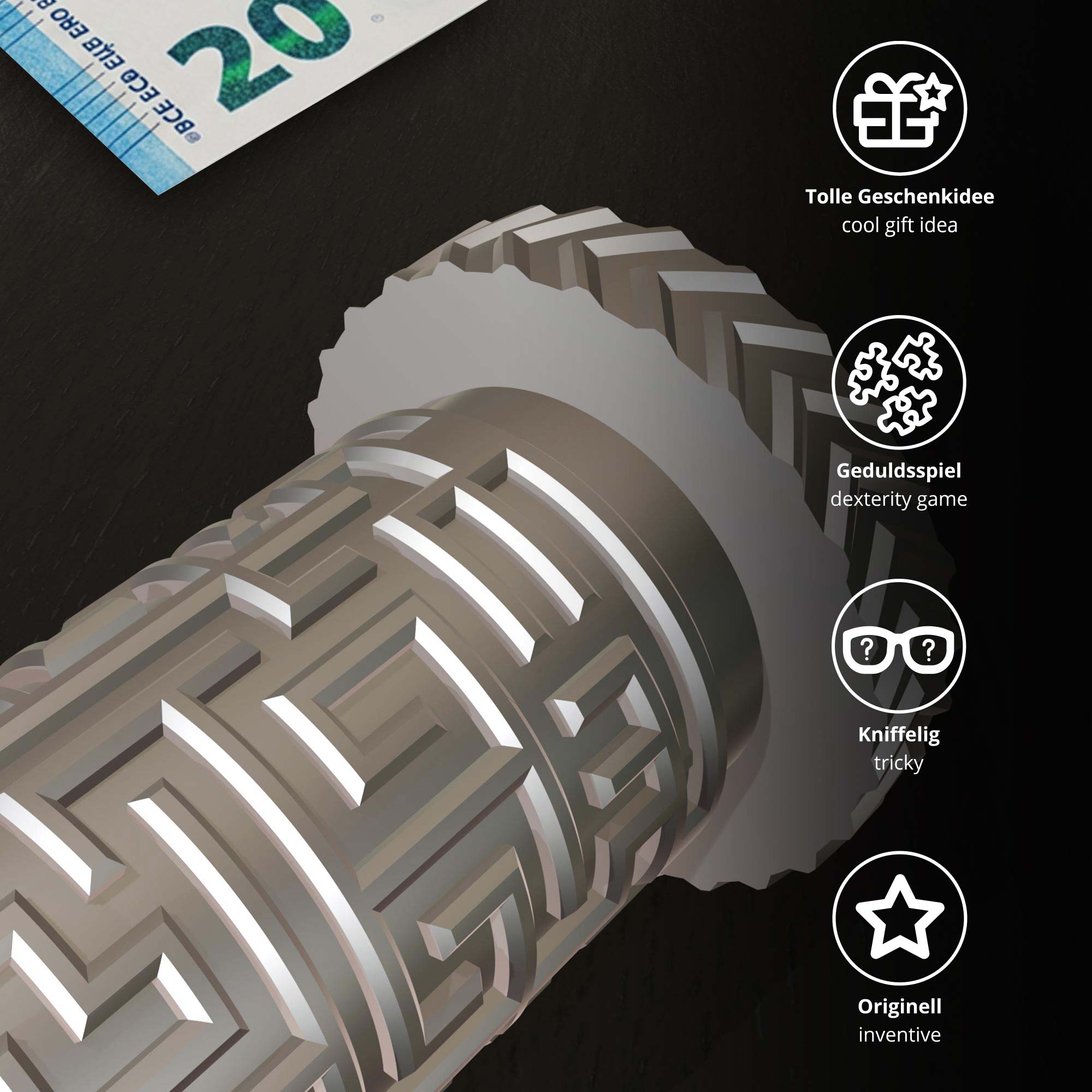 Einfach Geld schenken? Viel zu langweilig! Mit dieser Labyrinthbox wird Dein Geschenk zur echten Challenge. Bevor der Inhalt zum Vorschein kommt, muss erst das integrierte Labyrinth gelöst werden – Geduld und Geschick sind gefragt! Die stylische Röhre in Silber-Optik wurde im 3D-Druck gefertigt und überzeugt mit ihrem modernen Look. Ob Geldschein, Gutschein oder kleine Überraschung – alles wird sicher verstaut und erst nach ein wenig Knobelarbeit freigegeben.