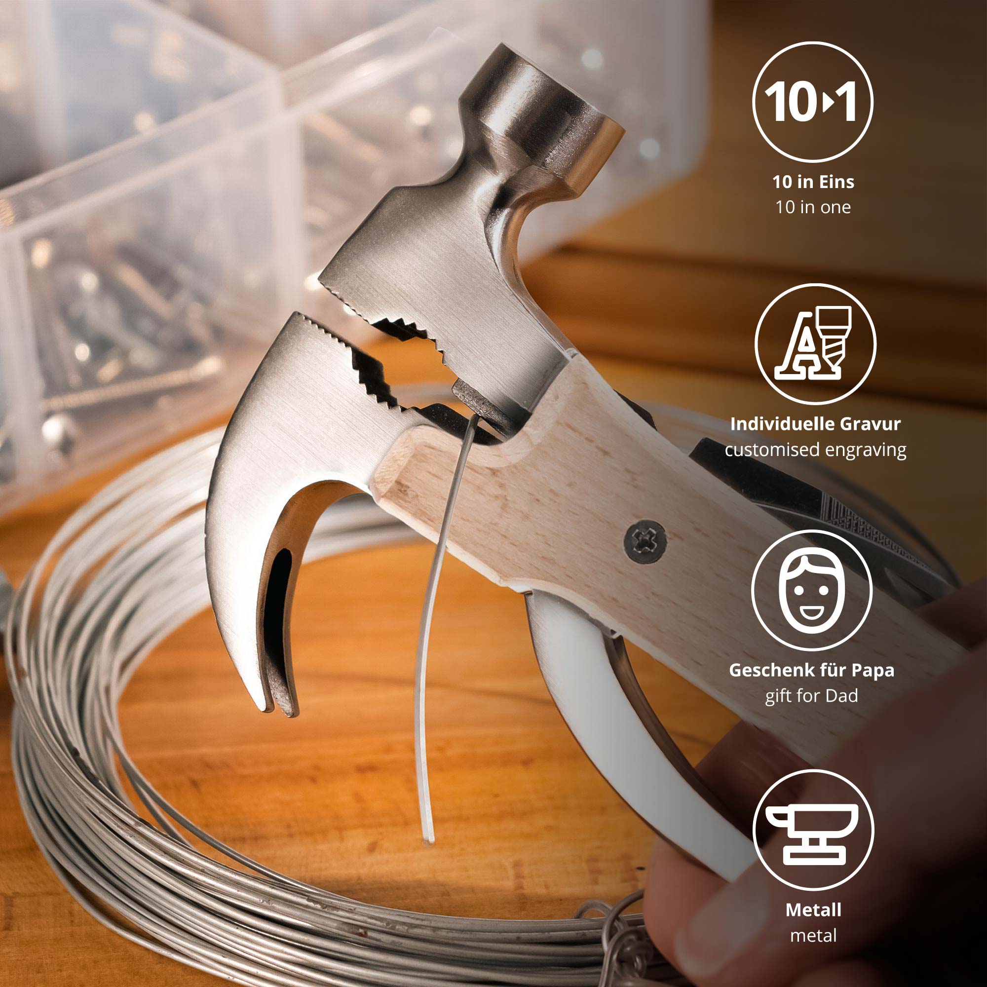 Ob Dein Papa nun einmal spontan heimwerken muss oder einfach nur ein praktisches Multifunktionswerkzeug für unterwegs sucht: Das Multifunktionswerkzeug für den besten Papa hat garantiert die Funktion, die er braucht. Das Werkzeug beinhaltet unter anderem Hammer, Drahtschneider, Zange, Flaschenöffner, Taschenmesser, Schlitzschraubenzieher, Säge, Reibahle, Feile, Kreuz-Schraubenzieher. Gleichzeitig wird die Gravur "bester Papa" auf der Seite aufgebracht - die wiederum ganz persönlich mit dem Namen Deines Papas ergänzt werden kann. Ein liebevolles Geschenk für Väter, die das Heimwerken lieben!
