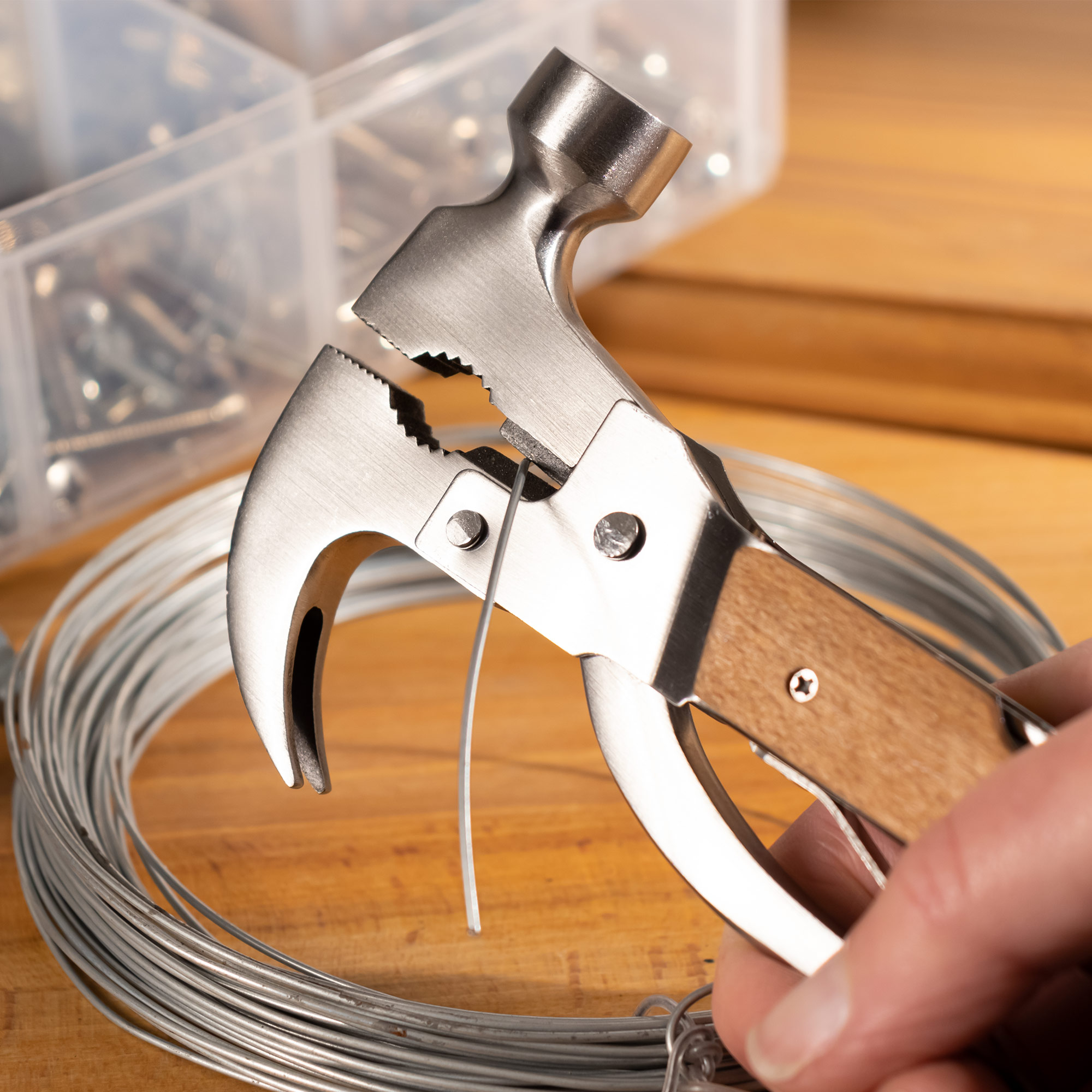 Ein echter Alleskönner für alle, die handwerklich gerne mal selbst Hand anlegen: Das Holz Hammer Multifunktionswerkzeug kombiniert gleich zehn praktische Funktionen in einem kompakten Design. Mit Hammer, Zange, Drahtschneider, Sägeblatt und mehr bist Du auf spontane Reparaturen genauso vorbereitet wie auf größere Outdoor-Einsätze. Besonders edel: Der Griff aus Holz in Kombination mit dem rostfreien Edelstahl – das sieht nicht nur gut aus, sondern liegt auch sicher in der Hand.