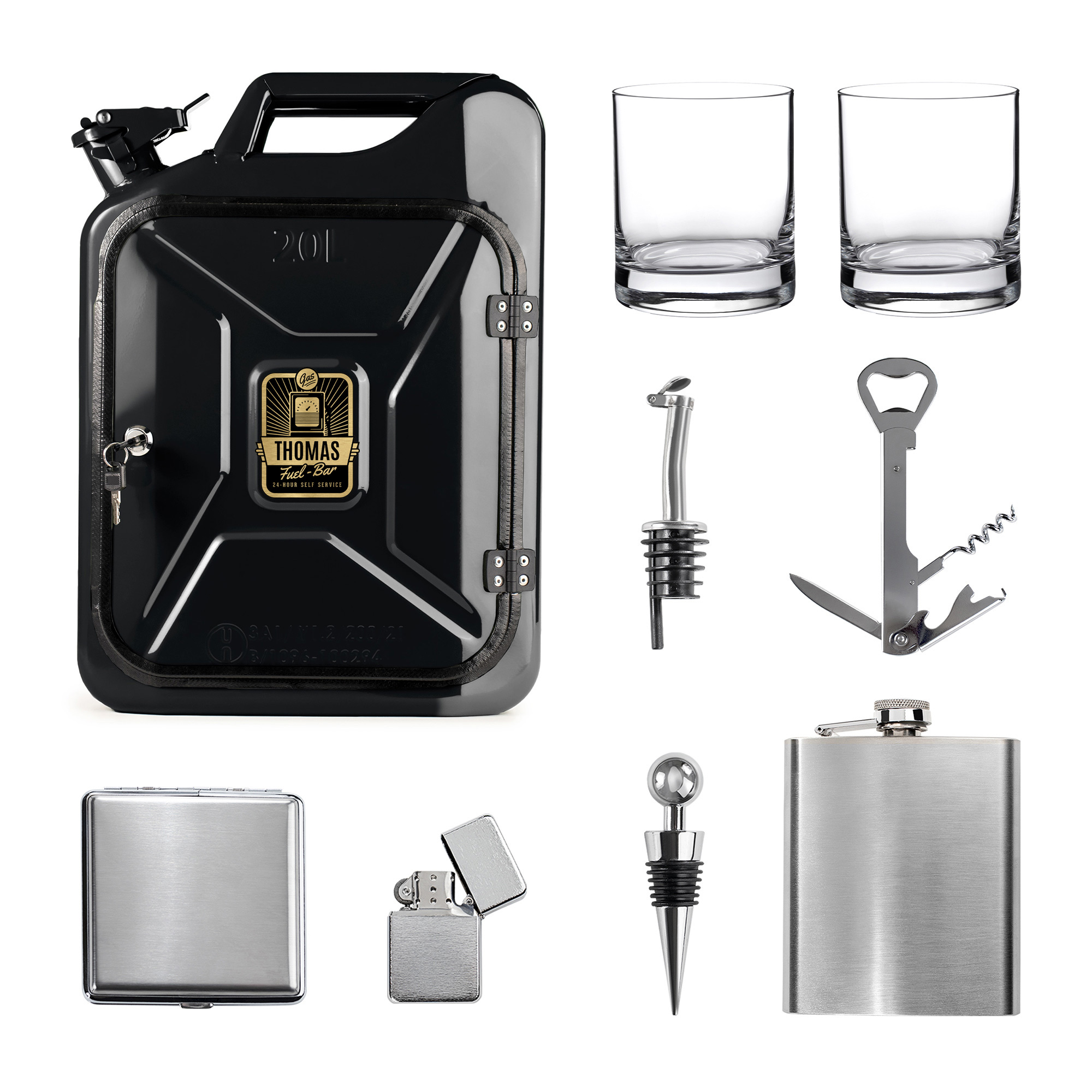 Stylisch, praktisch, absolut einzigartig: Die Kanister Minibar in Schwarz mit Gravur ist mehr als nur ein witziges Geschenk – sie ist ein echtes Statement für Genießer. Das elegante Design in Schwarz passt perfekt zu jedem Einrichtungsstil und macht die Bar zum Hingucker auf jeder Feier. Ob als Geschenk für Männer, Outdoorfreunde oder Heimwerker mit Stil – mit dieser Minibar zeigst Du echten Geschmack.
