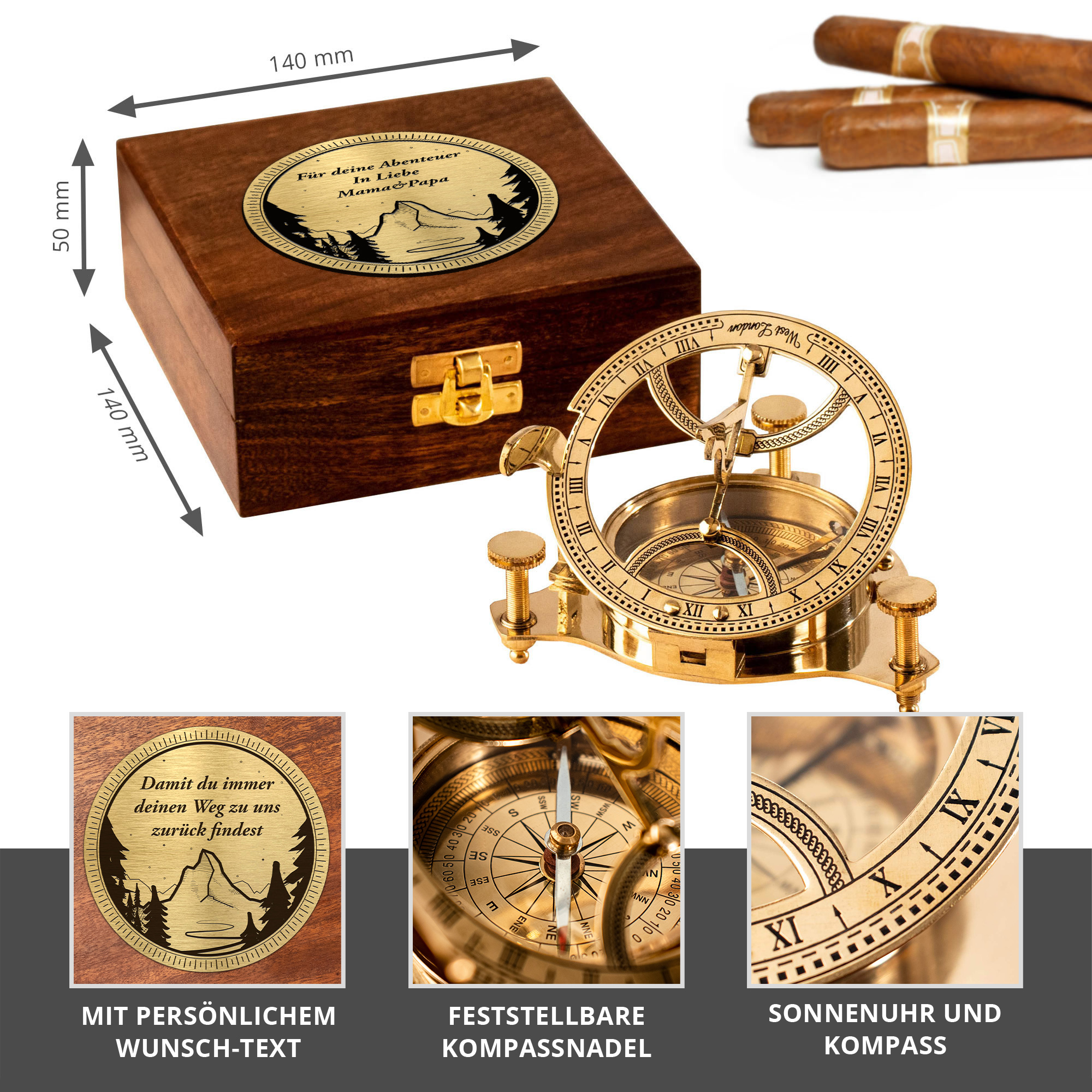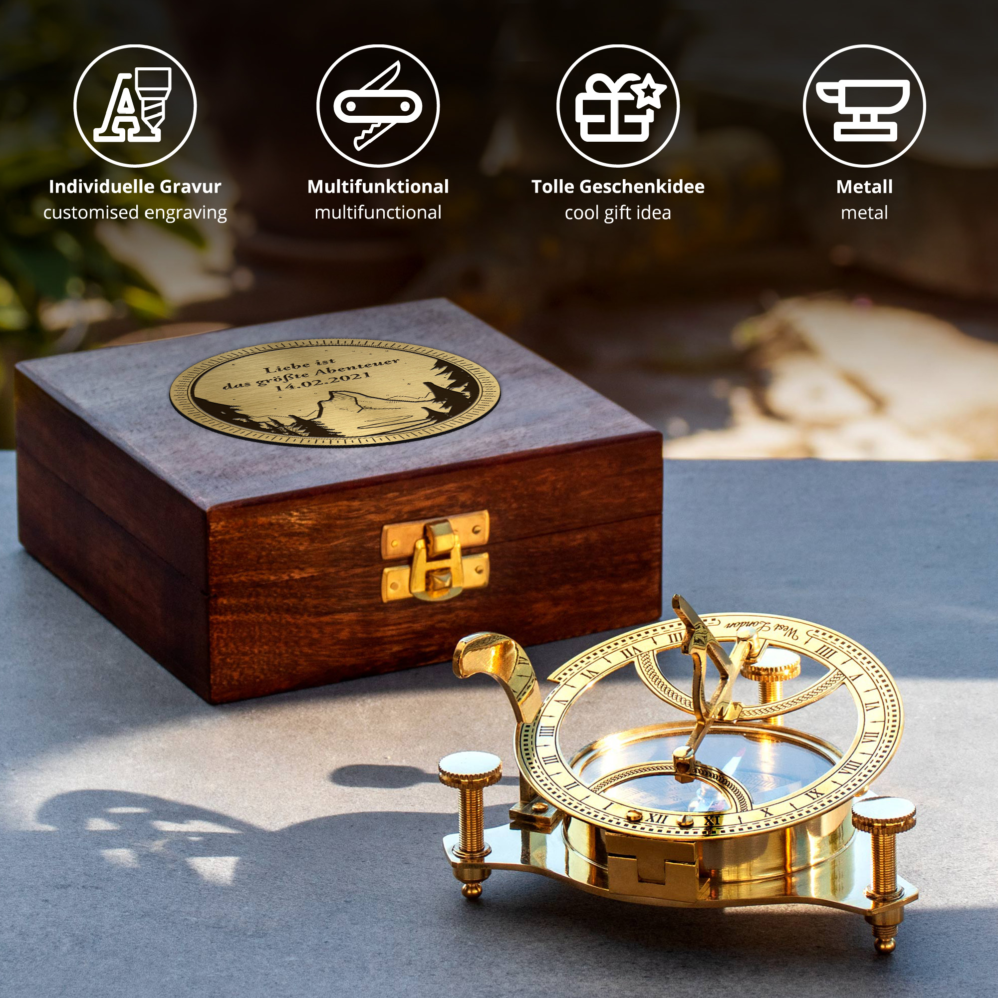 - Goldene Sonnenuhr mit integriertem Kompass für abenteuerlustige Entdecker