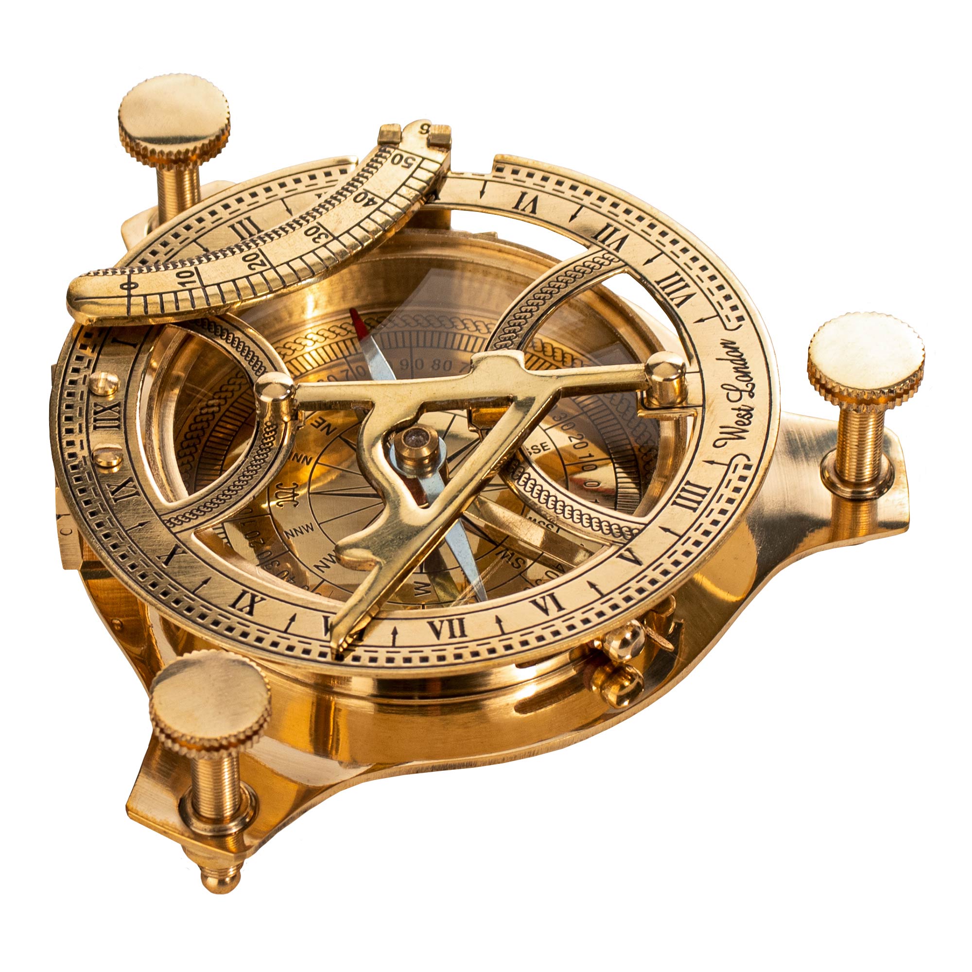 - Vintage-Kompass mit funktionaler Sonnenuhr aus poliertem Messing