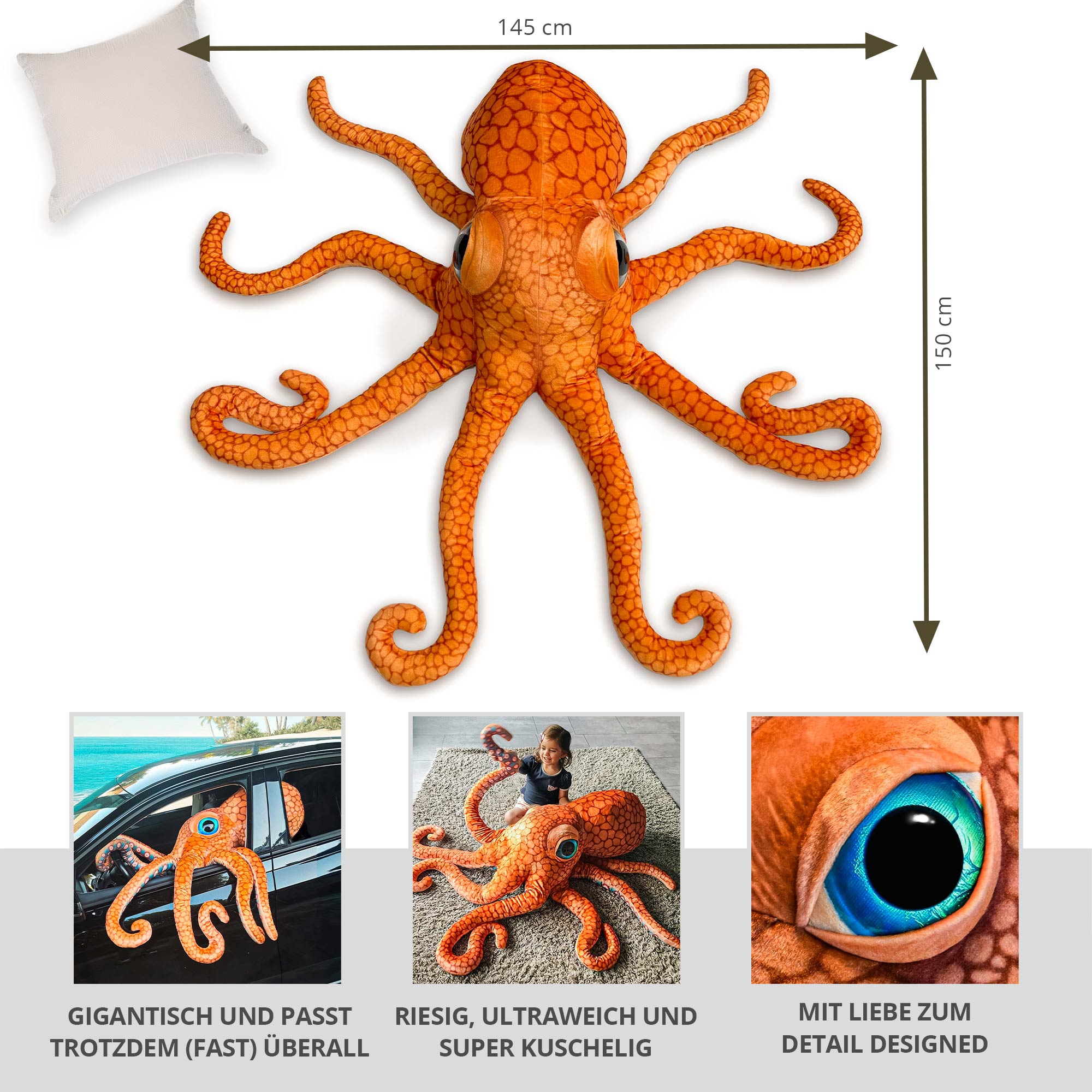 - Riesen Oktopus Kuschelkissen aus superweichem Plüsch