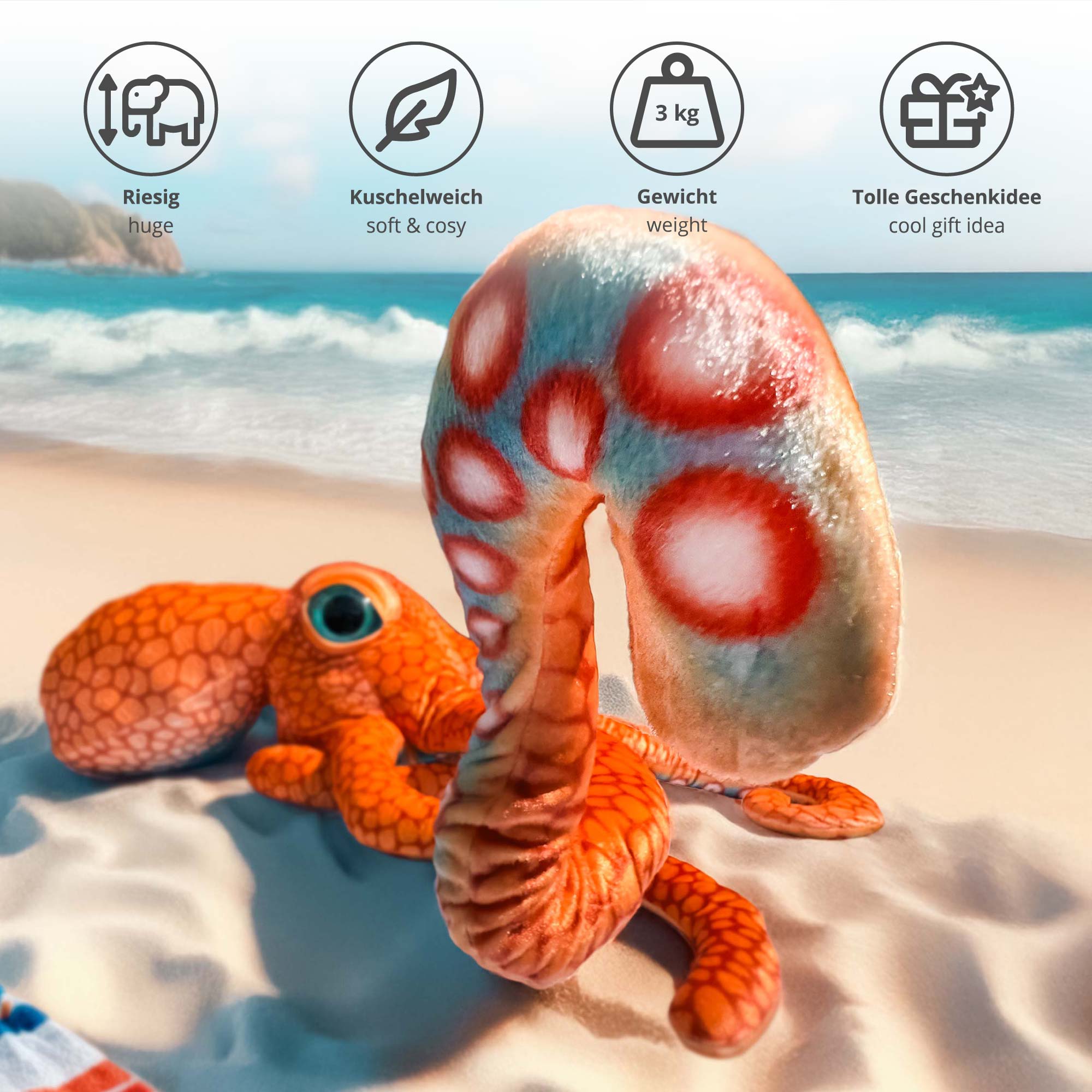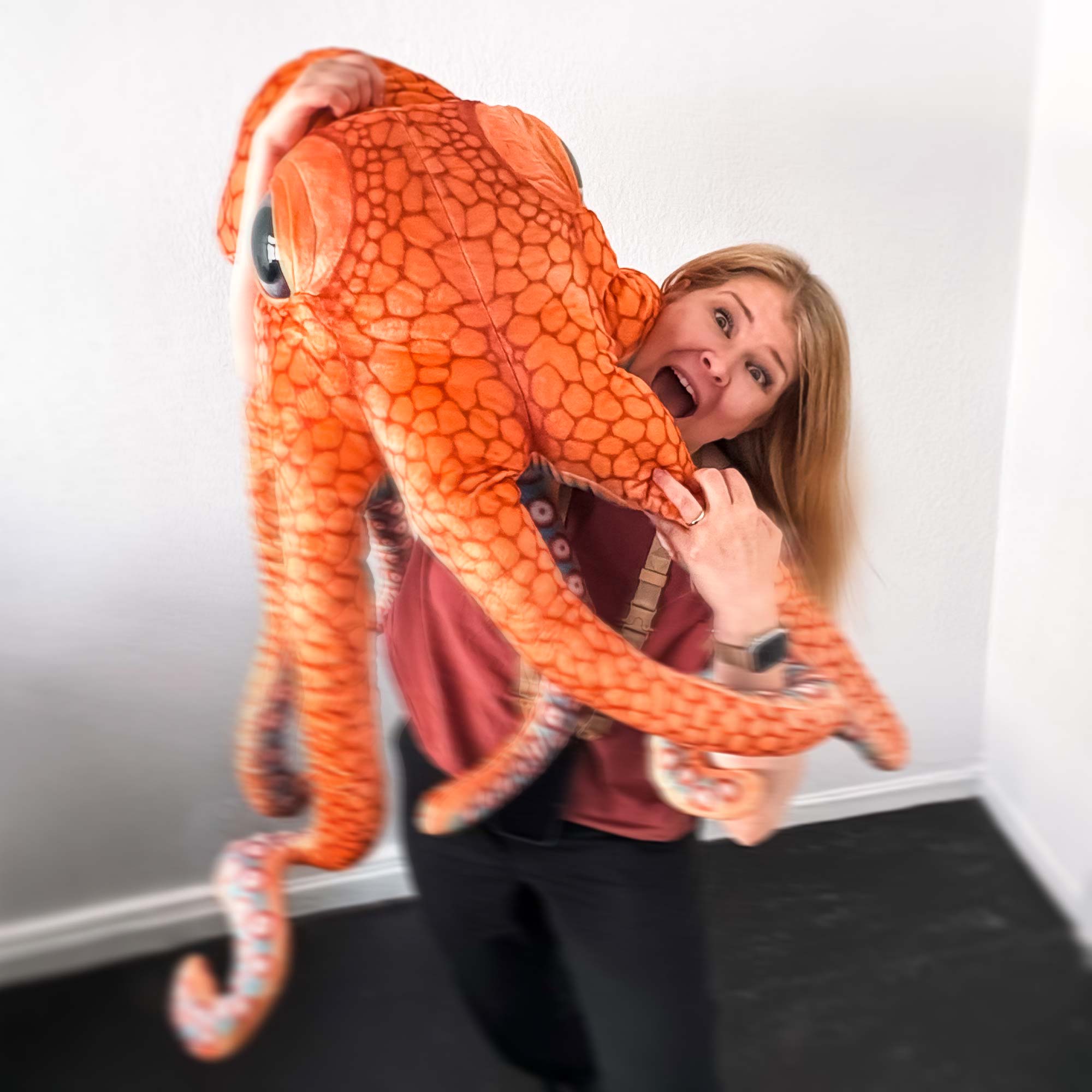 Ob auf dem Sofa, im Auto oder am Schreibtisch – dieser Kraken weiß, wie man für Aufsehen sorgt. Mit satten 150 cm Länge und seinem liebevoll gestalteten Design ist das XXL Kuschelkissen ein echter Blickfang und sorgt für Staunen, Lacher und kuschelige Momente zugleich. Der riesige Oktopus ist nicht nur weich und anschmiegsam, sondern bringt auch Charakter in jedes Zimmer.