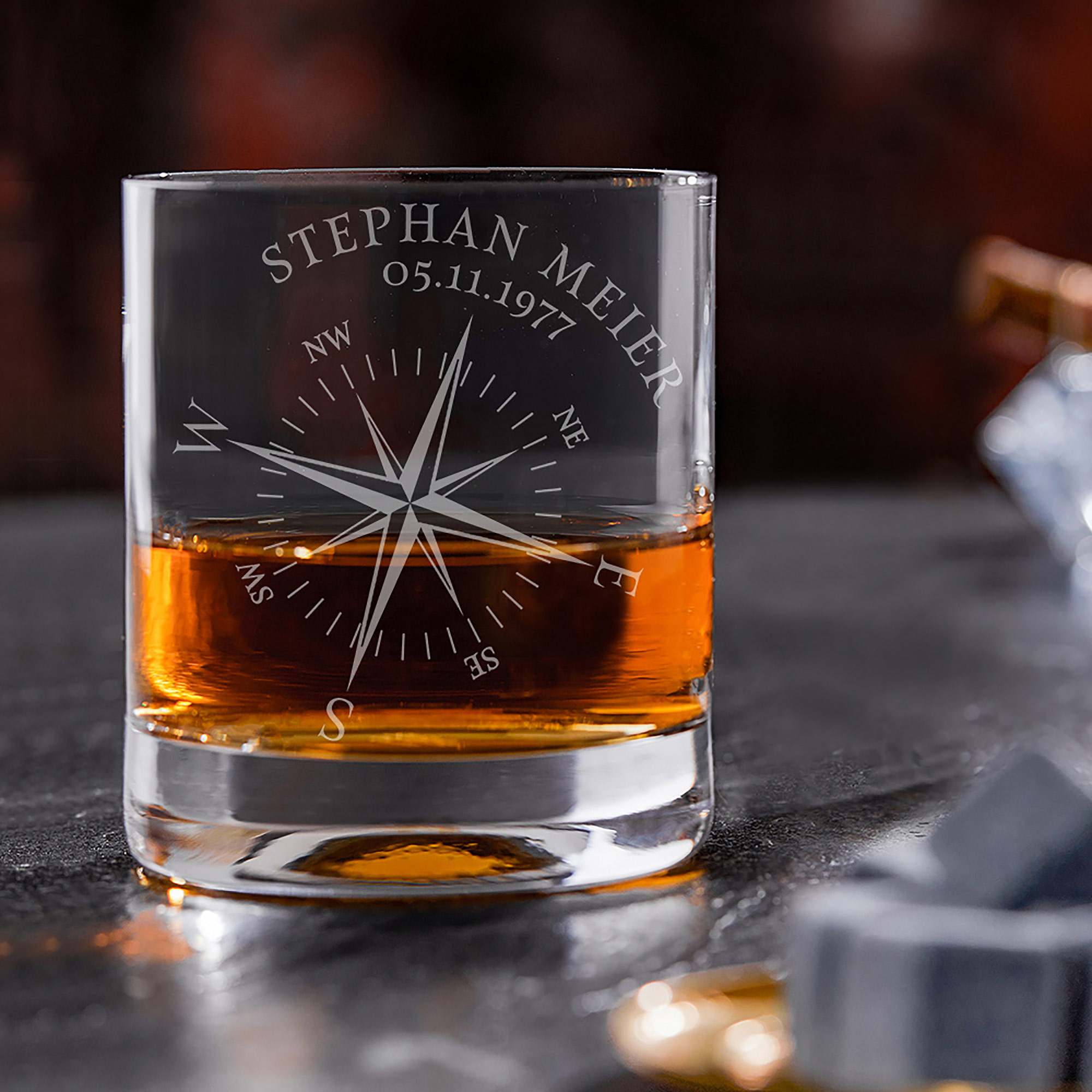 Alle Segel setzten - auf in Richtung Genuß. Unser Set mit schicker Design Whiskykaraffe und zwei Whiskygläsern mit individueller Gravur ist perfekt, die endlose See der köstlichen Getränke zu durchpflügen. Die Whisky Karaffe ist in Form eines Globus designt. Die zwei Whiskygläser mit Gravur tragen ein dazu passendes Kompassmotiv - und werden mit einer individuellen Gravur eines Namens und eines Wunschdatums versehen.