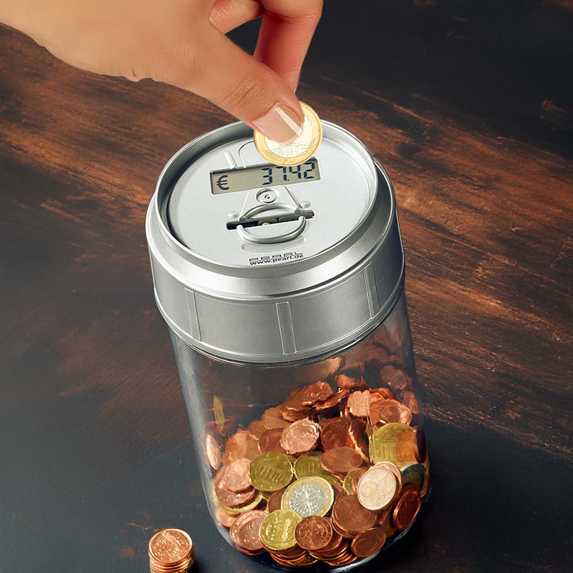 Bestimmt hast Du auch schon einmal in Deinem Leben auf ein bestimmtes Ziel hin gespart. Dazu eignen sich leere Riesenflaschen mit fünf Liter Inhalt, die man in der Wohnung auf den Boden stellt. Ohne einen Münzzähler ist das Auswerten Deines Gesparten eine mühevolle Kleinarbeit. Oft hast Du dann beim Anblick der halb vollen Flasche mit den vielen Münzen es aufgegeben den gesparten Betrag nachzuzählen. Das ist jetzt vorbei, denn die mitzählende Spardose nimmt Dir künftig die Arbeit des Geld-Zählens ab.