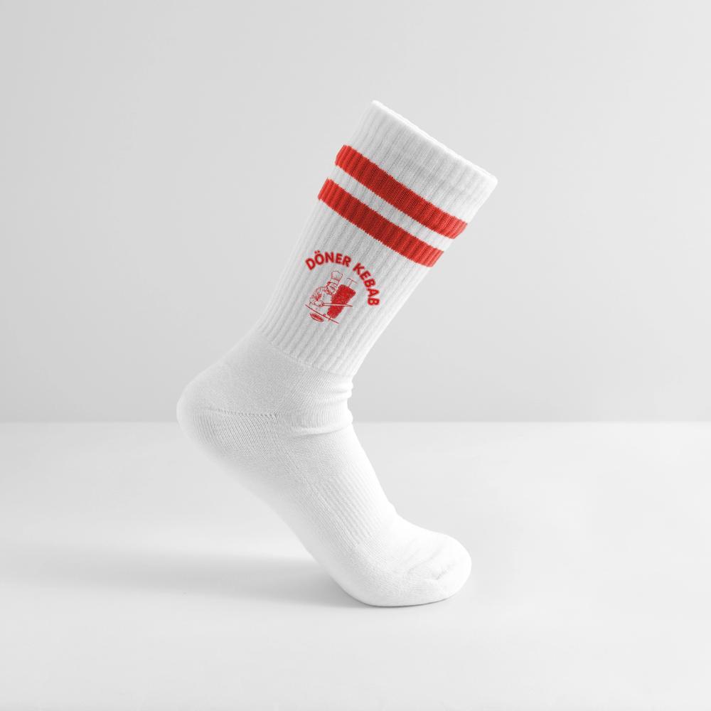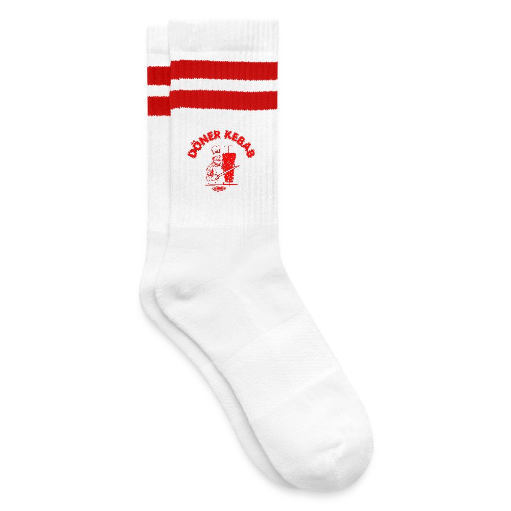 - Weiße Tennissocken mit rotem „Döner Kebab“-Motiv