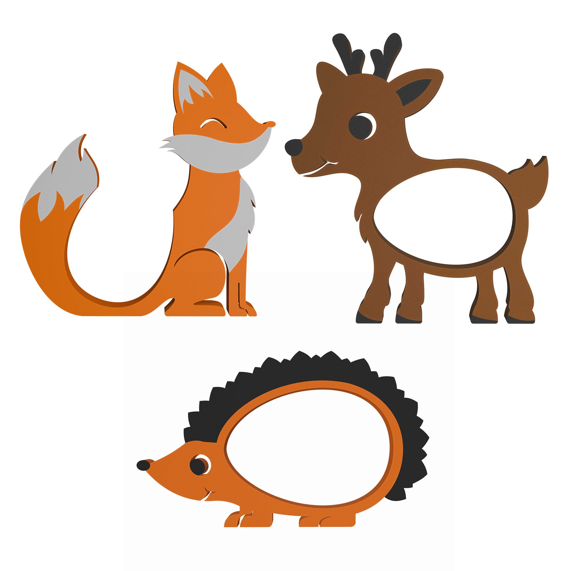 - Drei liebevoll gestaltete Tierhalter: Fuchs, Reh & Igel